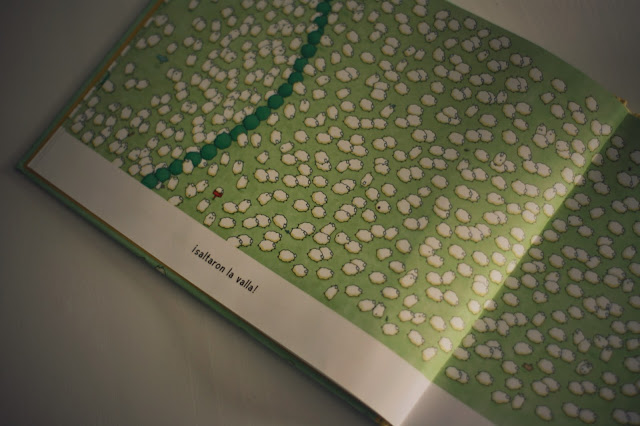 Como ya os conté este cuento lo edita La casita roja y está escrito e ilustrado por Haluka Nohana que ha logrado meter en 32 páginas ¡8.000 ovejas! sí sí ¡Tal cual lees! ¡8.000 ovejas en este álbum ilustrado! de tapa dura y recomendado para niños de entre 2 a 6 años, aunque creo que no tiene límites.